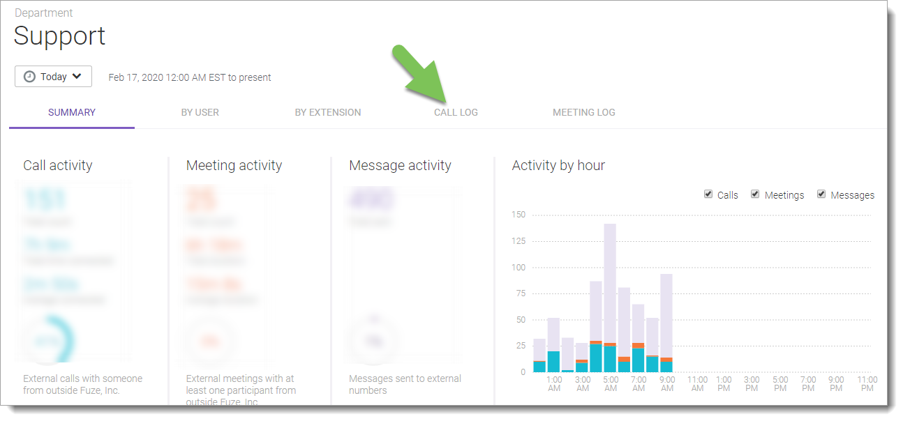 - On the Department screen that appears, navigate to the CALL LOG tab.