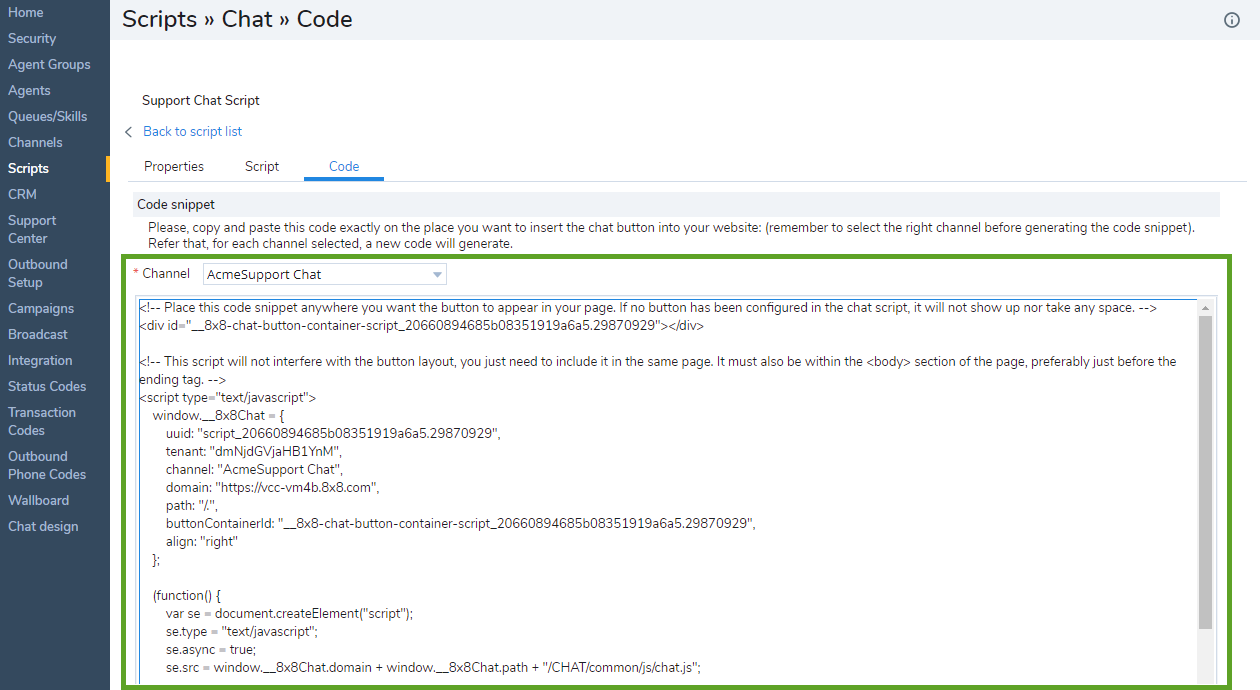 - Copy and paste the code to a page where you want to insert a chat button on your website.