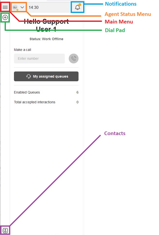 This article explains how to navigate the Contact Center. Agent Workspace is split into: