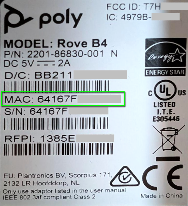 - Record the 12-digit MAC address from the information sticker on the back of the device.