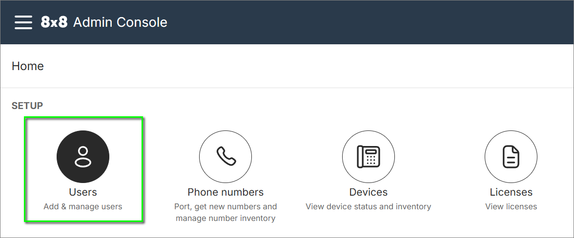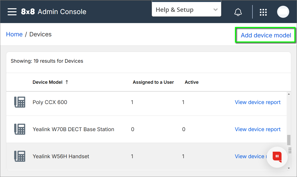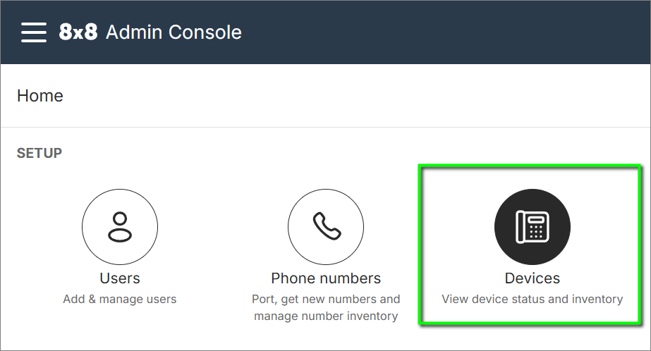 - Log into 8x8 Admin Console, then click on Home > Devices.