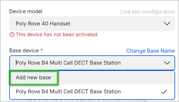- In the drop-down menu select the Poly Rove B4 Multi Cell DECT Base Station.