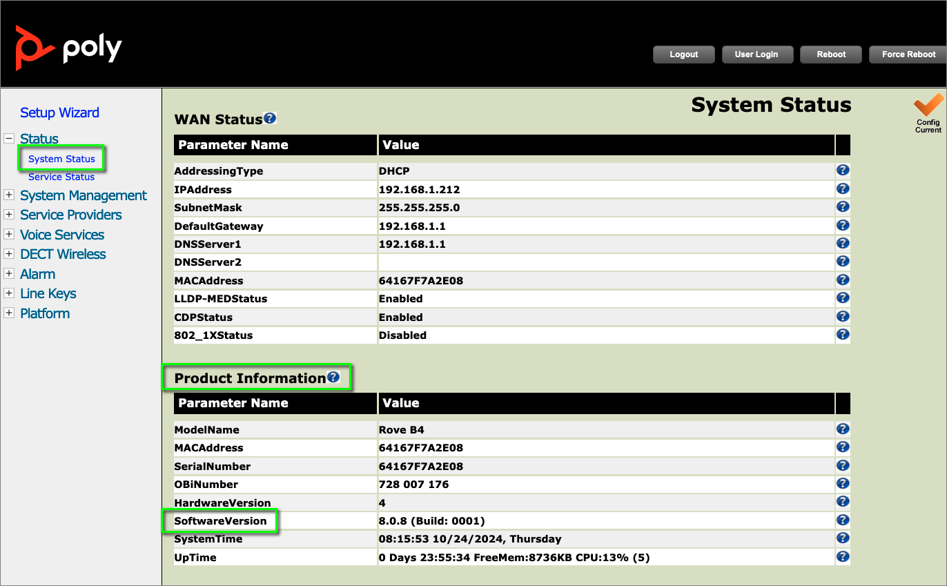 - Log into the web interface of any of the base stations and navigate to Dect Wireless > Handset Summary.
