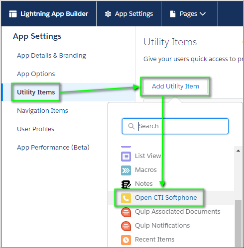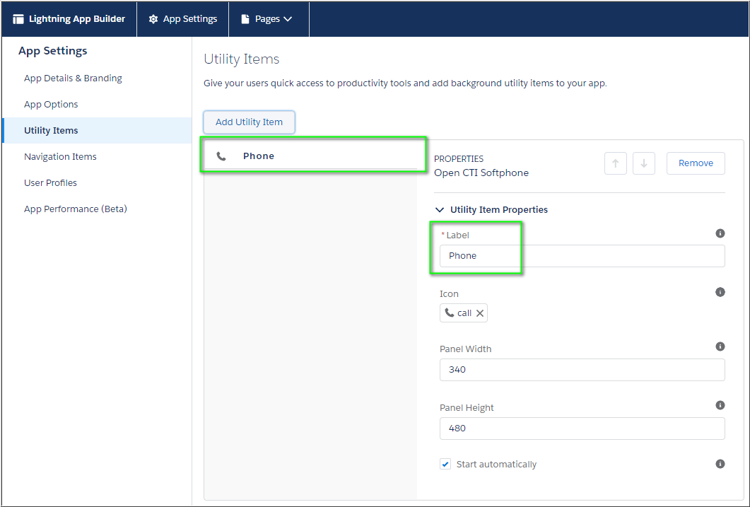 - Remove the Open CTI Softphone from your Salesforce app's Salesforce Lightning Utility Bar and click Save.