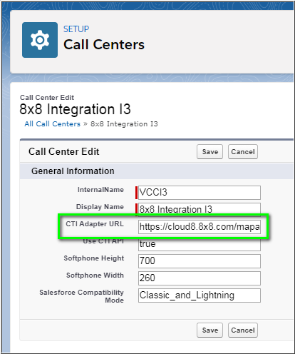 - CTI Adapter URL: Follow the Call Center for 8x8 Work setup.