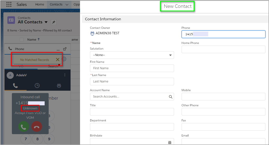 - Also, the caller ID phone number will be automatically populated into the new object template's Phone field.