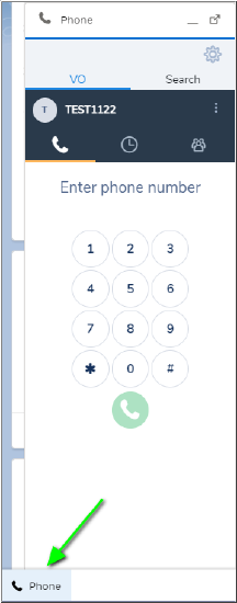 - Click the Phone button to bring the 8x8 communication panel into view.
