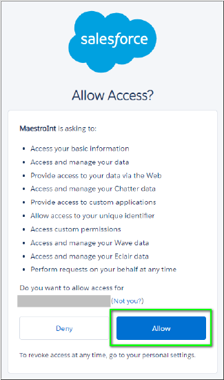 - Users should see an Allow Access? prompt the first time they click on Home or land on another Salesforce page where the integration is available. They must click Allow for the integration to work.