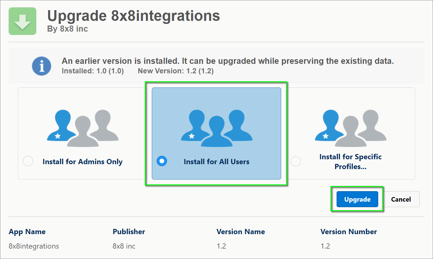 Install the 8x8 v 3.2 Integration Package into Salesforce